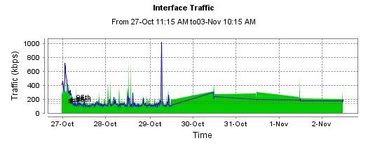 My Rx/Tx traffic reports are not as detailed as they were before. On a report generated for today, detail is high, on 7 day Report there is a change in detail from about 4 days ago which detail was high but since detail has been very low. Monitoring levels are set at 1 minute. An example is given below.