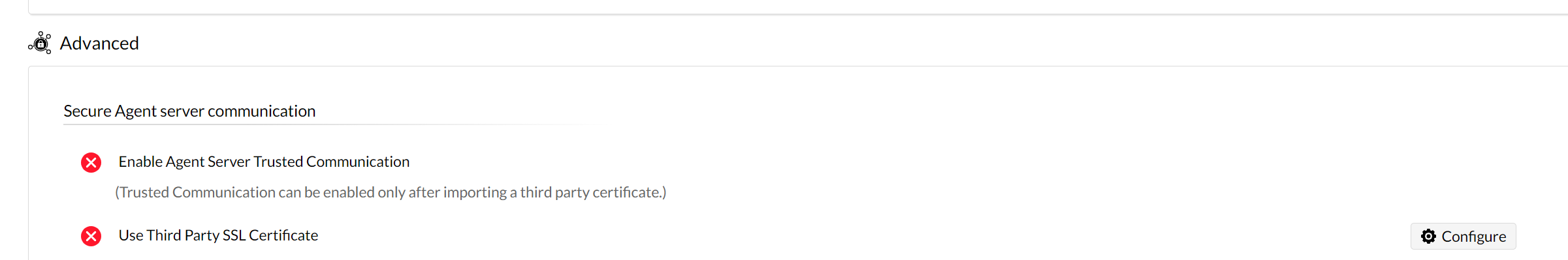 We are trying to setup Enable Agent Server Trusted Communication, we have a certificate installed to secure the web interface, which is working ok. When we choose Enable Agent Server Trusted Communication, it wants us the add a certificate, and just re-directs to the add third party certificate upload, which already has the certificate?