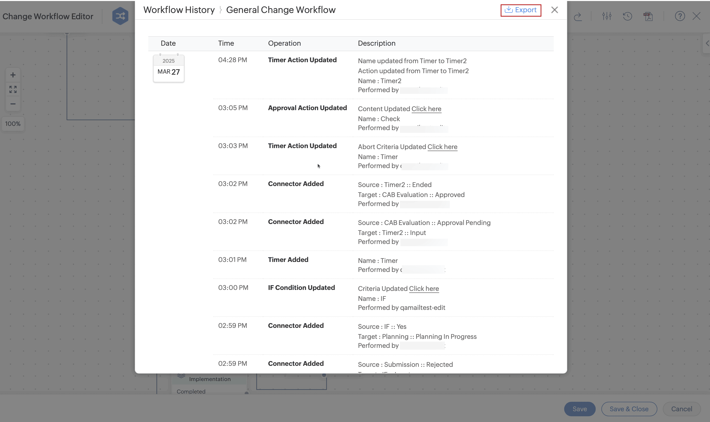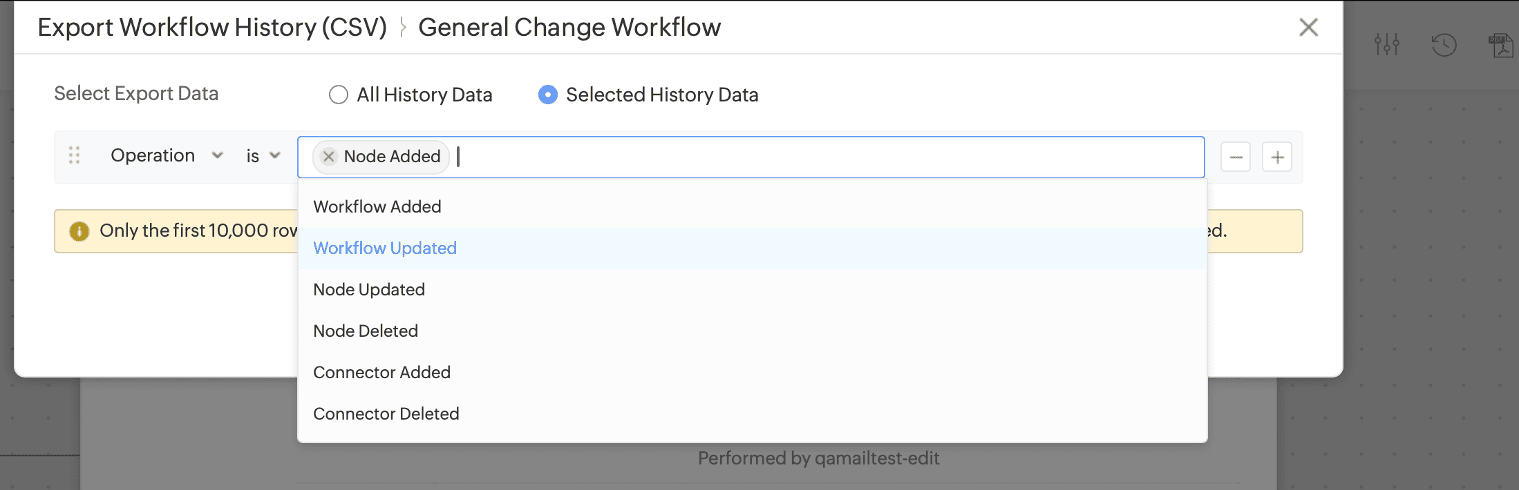 Technicians can now export the history of a workflow from the workflow editor and the list view.