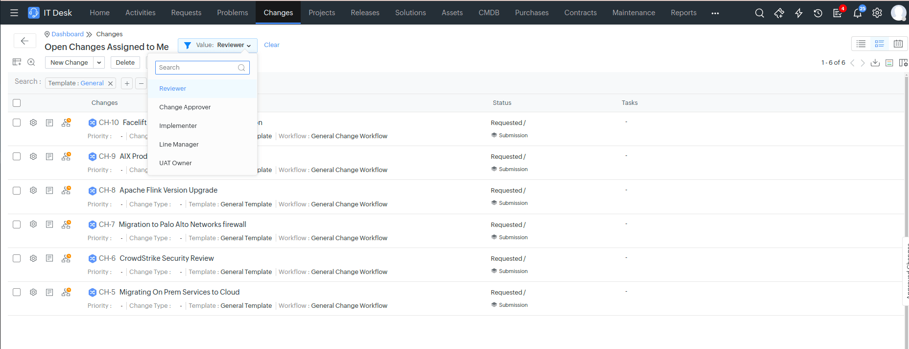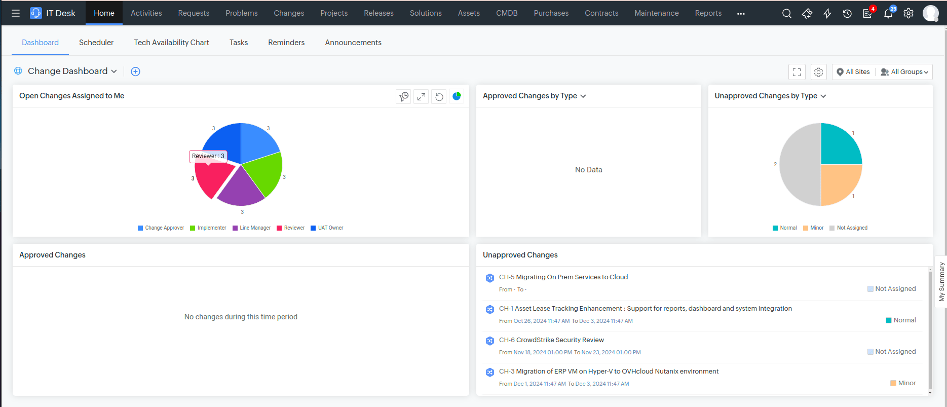 New widget Open Changes assigned to me is now supported in Change Dashboards.