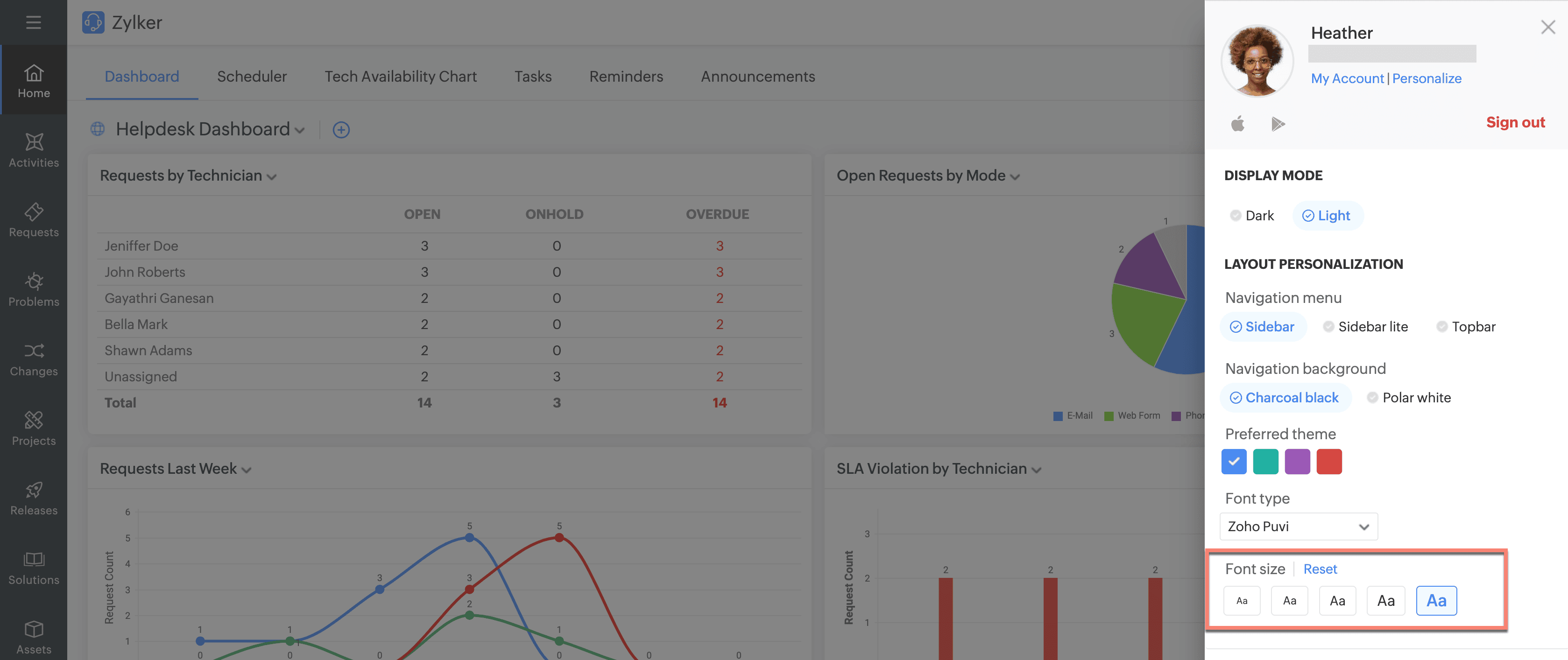 Users can customize the preferred font size for text across the application to improve readability under Layout Personalization.