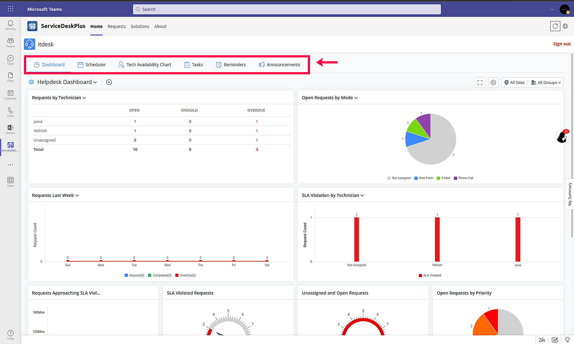 Enhanced Home Module: You can now access the tabs like Dashboard, Scheduler, Tech Availability Chart, Tasks, Reminders, and Announcements from within the home page.