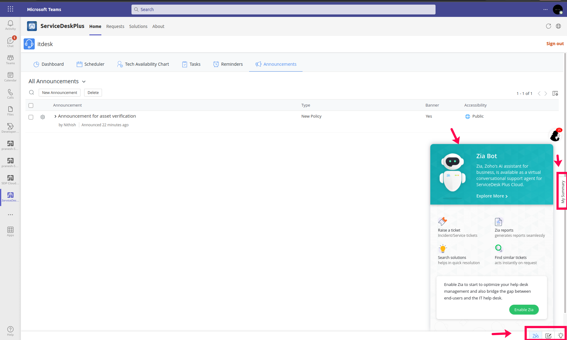 Streamlined Access: "My Summary" and the footer, including "Ziabot," "Feedback," and "Discover Product," are now conveniently accessible from within the integration home page.