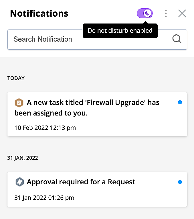 Support for the Do Not Disturb option to disable popup notifications. You can enable/disable it from the notification pane using the appropriate toggle.