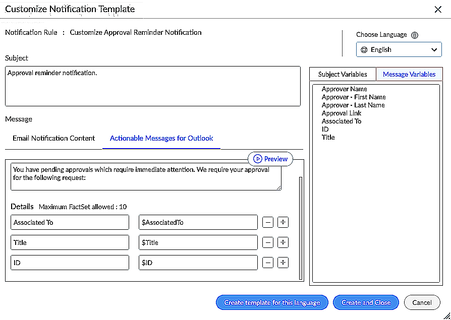 Note: This option will be available only when Actionable Messages for Outlook is enabled under Setup > Apps & Add-ons > Integrations > Third Party Integrations.