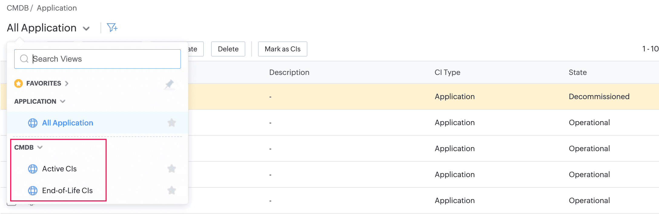 Filter CIs based on its states: Active CIs or End-of-Life CIs.