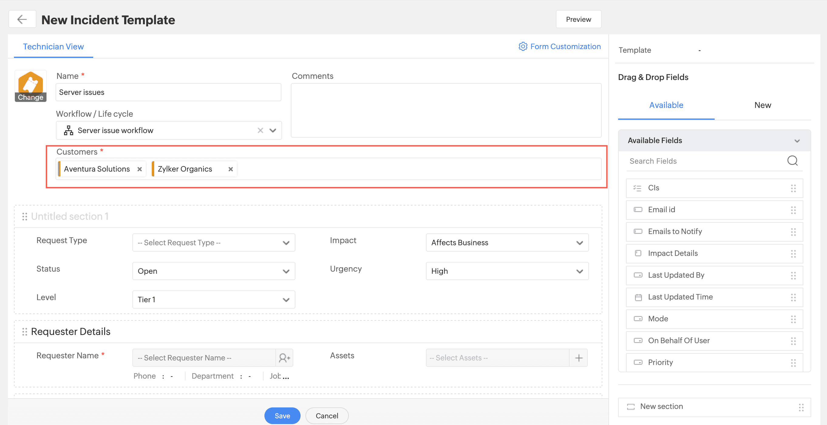 You can now set request templates as global defaults for all customers or as custom defaults for specific customers.
