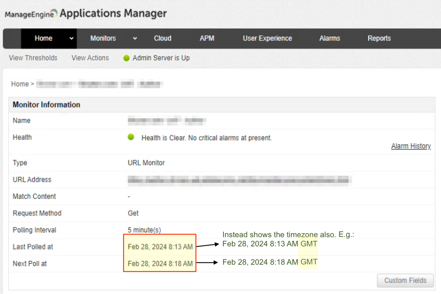 Can you please help me understand how can I view the timezone details in Application Manager against all the date time fields?