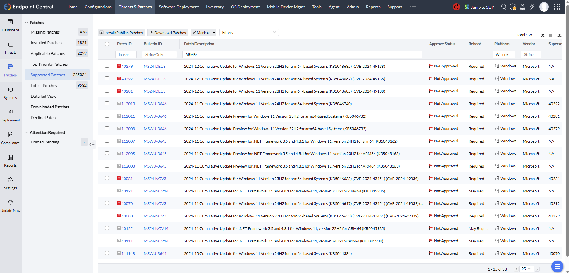 We are pleased to announce that our product now supports Windows ARM patches, starting from the build 2325 series. This enhancement ensures full compatibility with Windows ARM-based systems, providing seamless patch management and optimized performance for users utilizing this architecture.