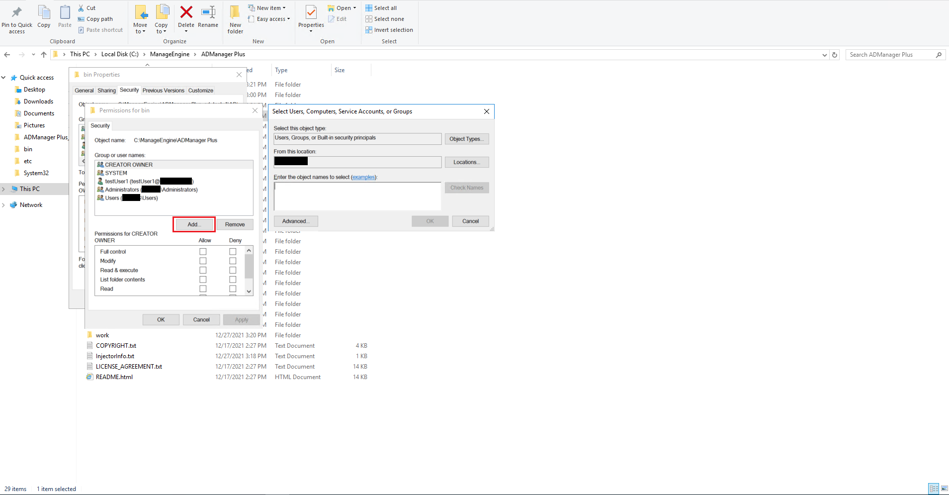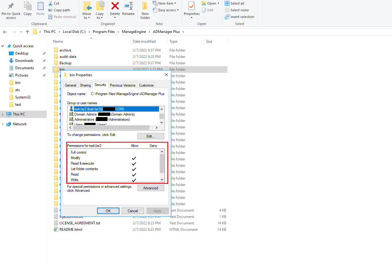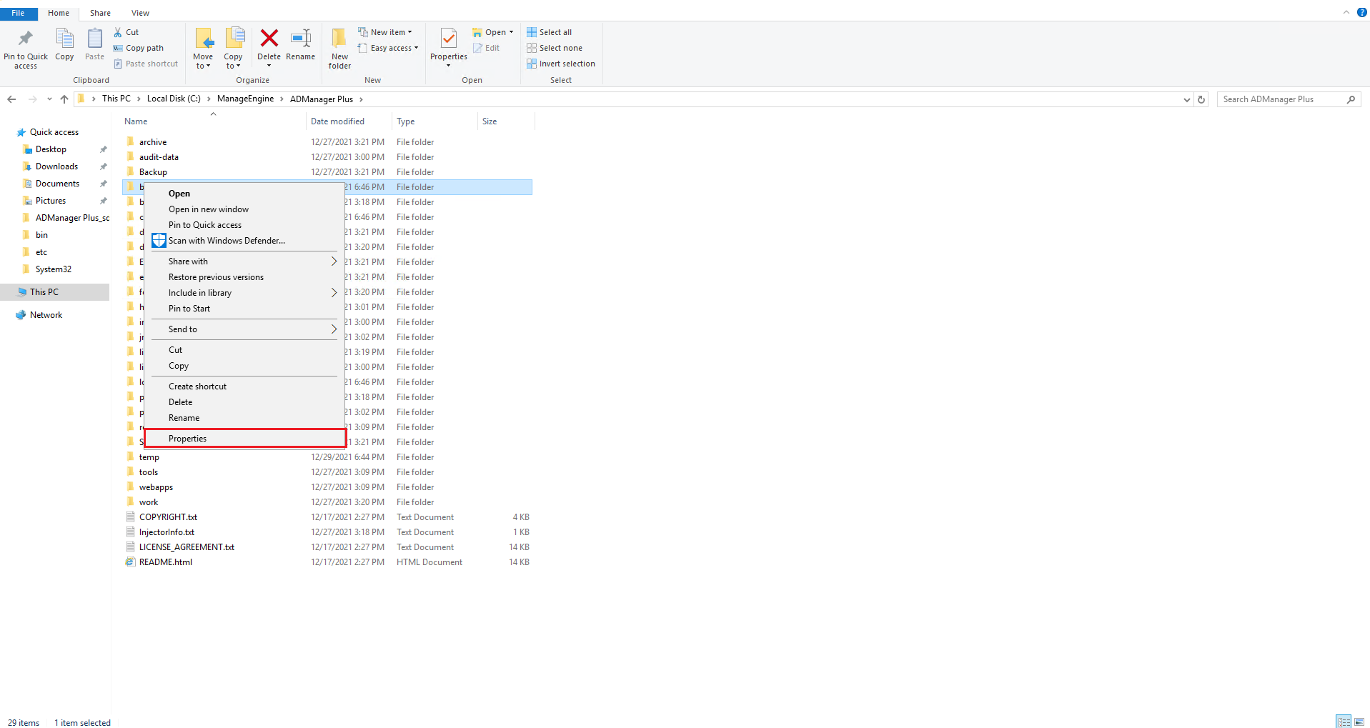 - Right-click on lib folder in the ADManager Plus installation folder and click Properties.