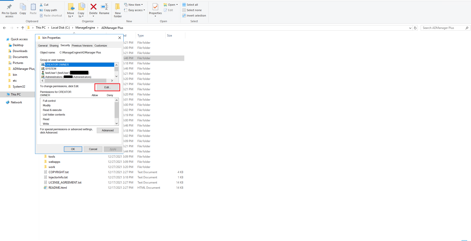 - Go to Security tab, click on Edit.