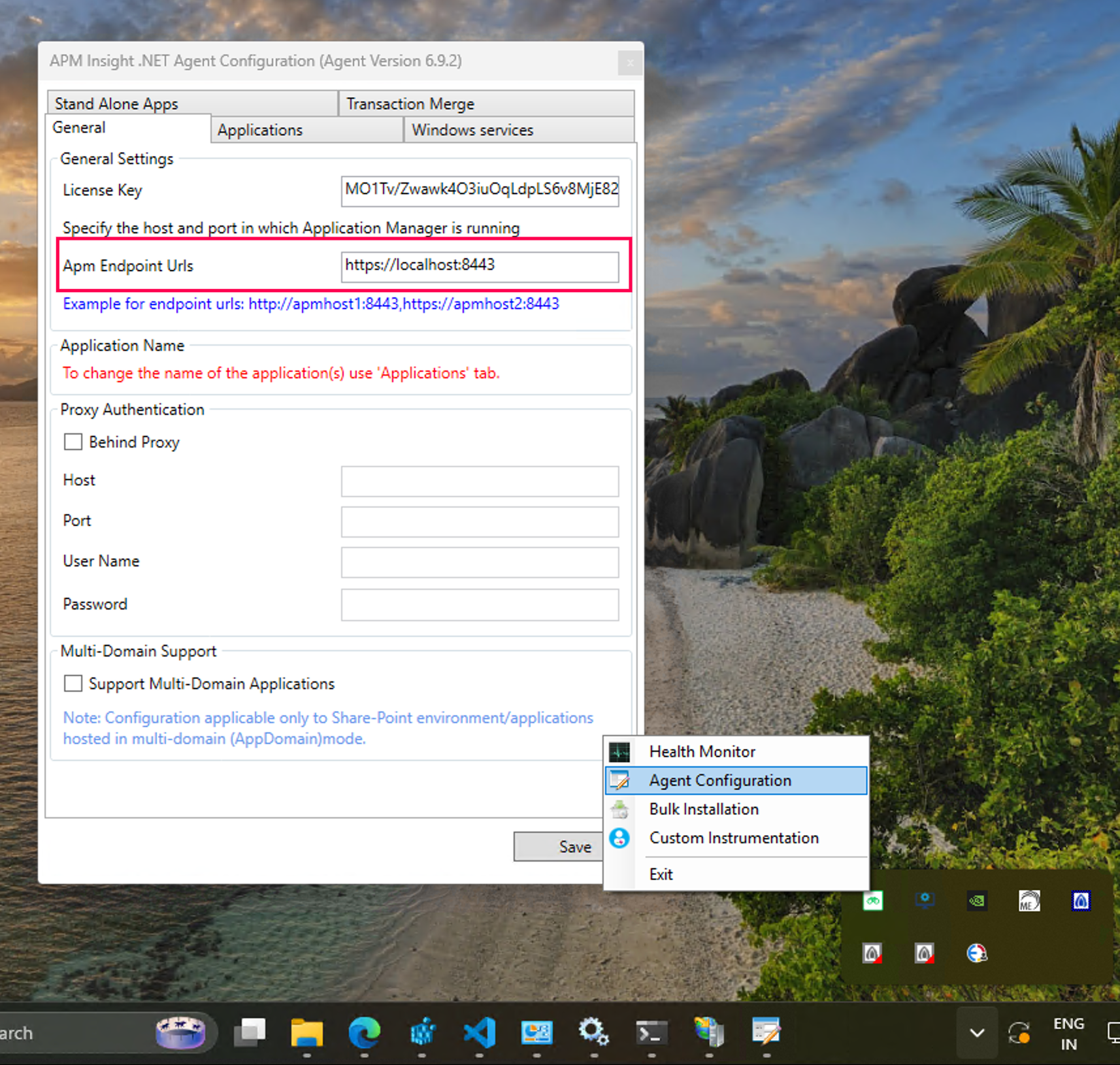 - Get the configured the "Apm Endpoint Urls" from APM Insight .NET Agent Configuration tool