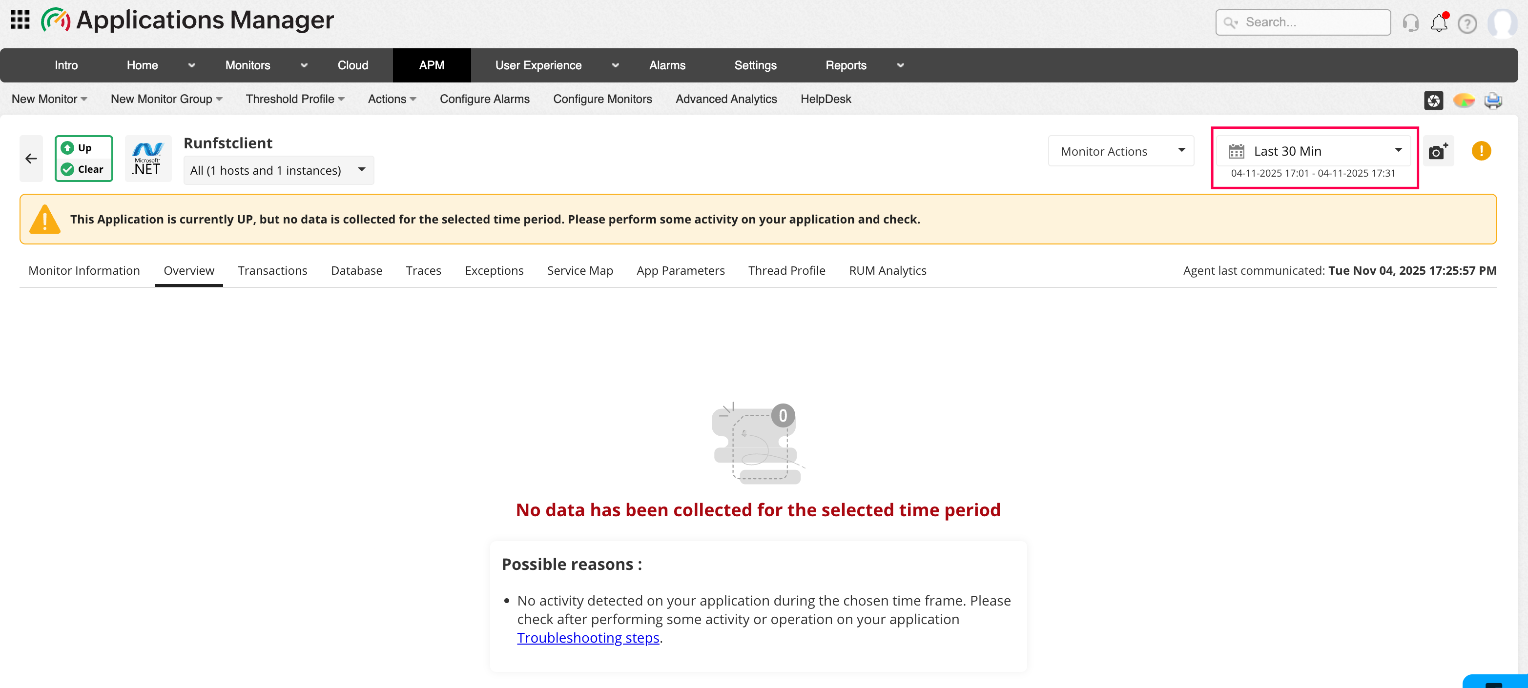 - If the output doesn't contains references to 'Applications Manager' and unable to reach the server, either the endpoint is incorrect or not allowed for communication. So, ensure that network and firewall configurations allow communication from this APM Insight .NET agent to the Application Manager then update the appropriate values in "Edit APM Insight .NET Agent Configuration" tool.