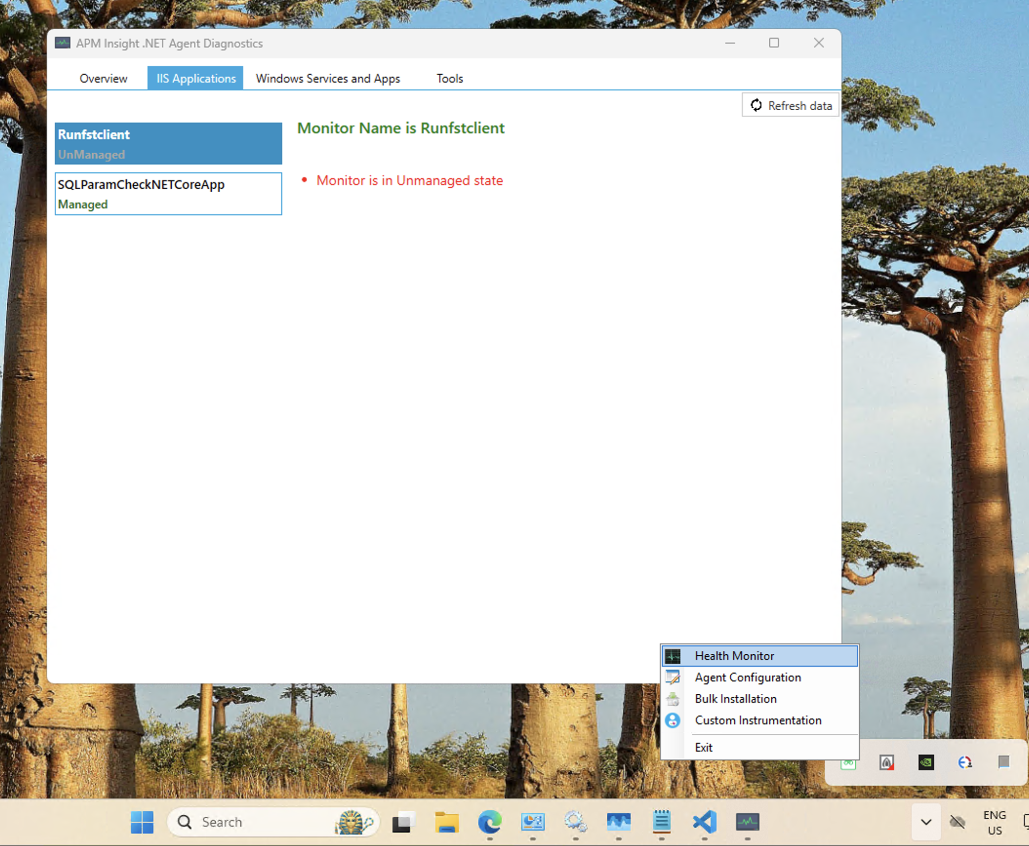- Run following cmd using windows powershell administrator mode with above "Apm Endpoint Url" and output should shows the “Applications Manager” content as below screenshot: