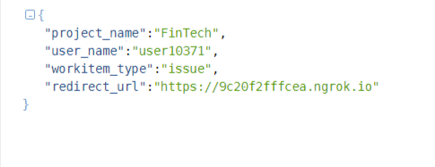 {"project_name":"FinTech", "user_name":"user10371", "workitem_type":"issue", "redirect_url":"https://9c20f2fffcea.ngrok.io%22%7D/