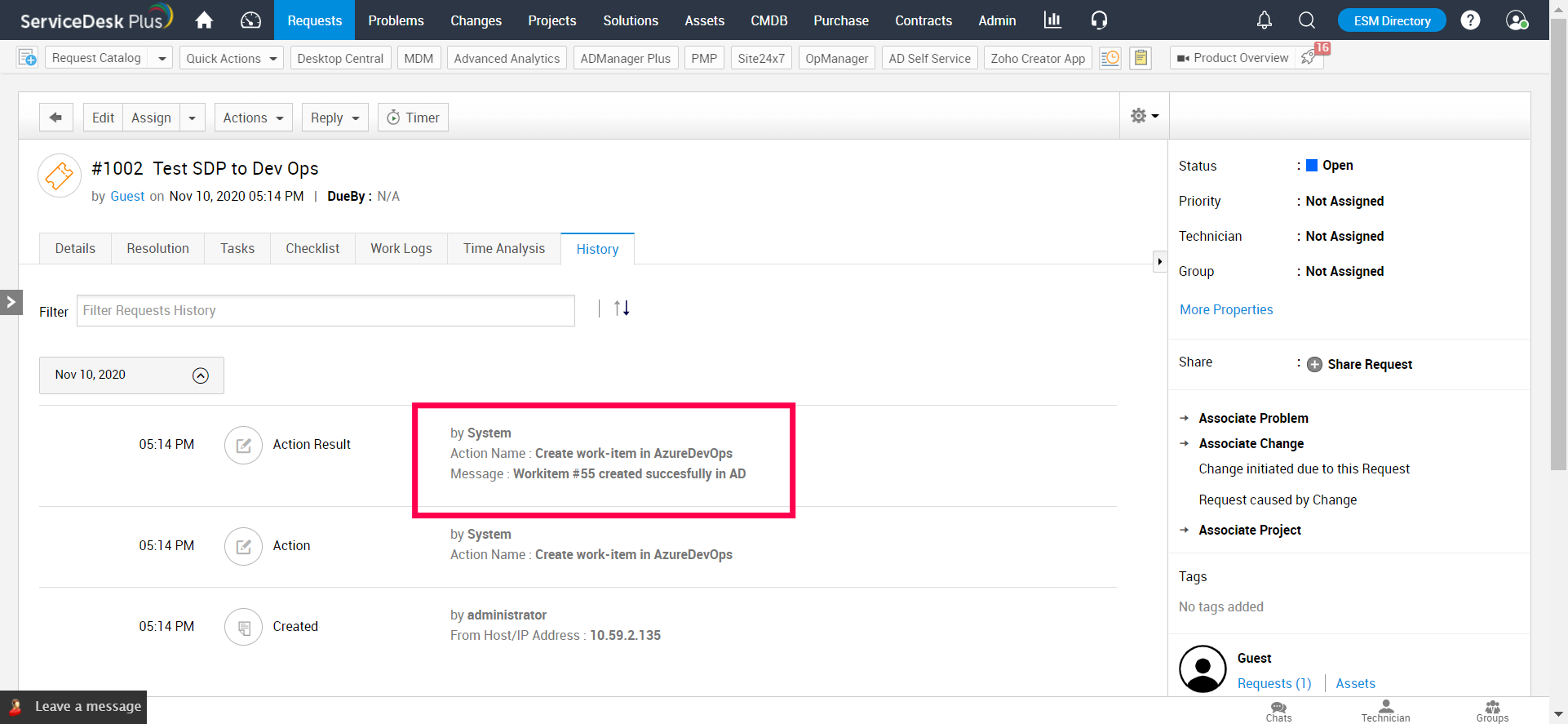 Azure DevOps --> ServiceDeskPlus