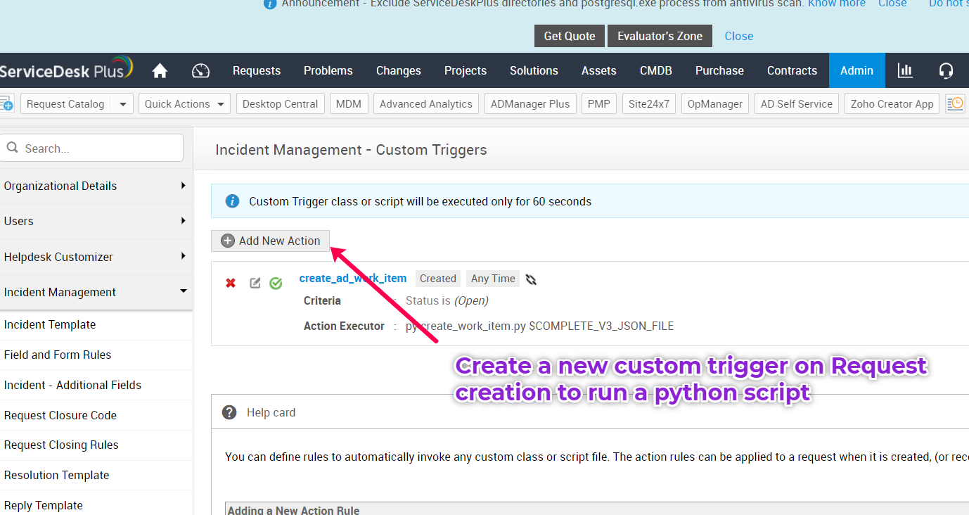 Create a new work-item in Azure DevOps when a request is created in SDP (using Custom Trigger + Python script)
