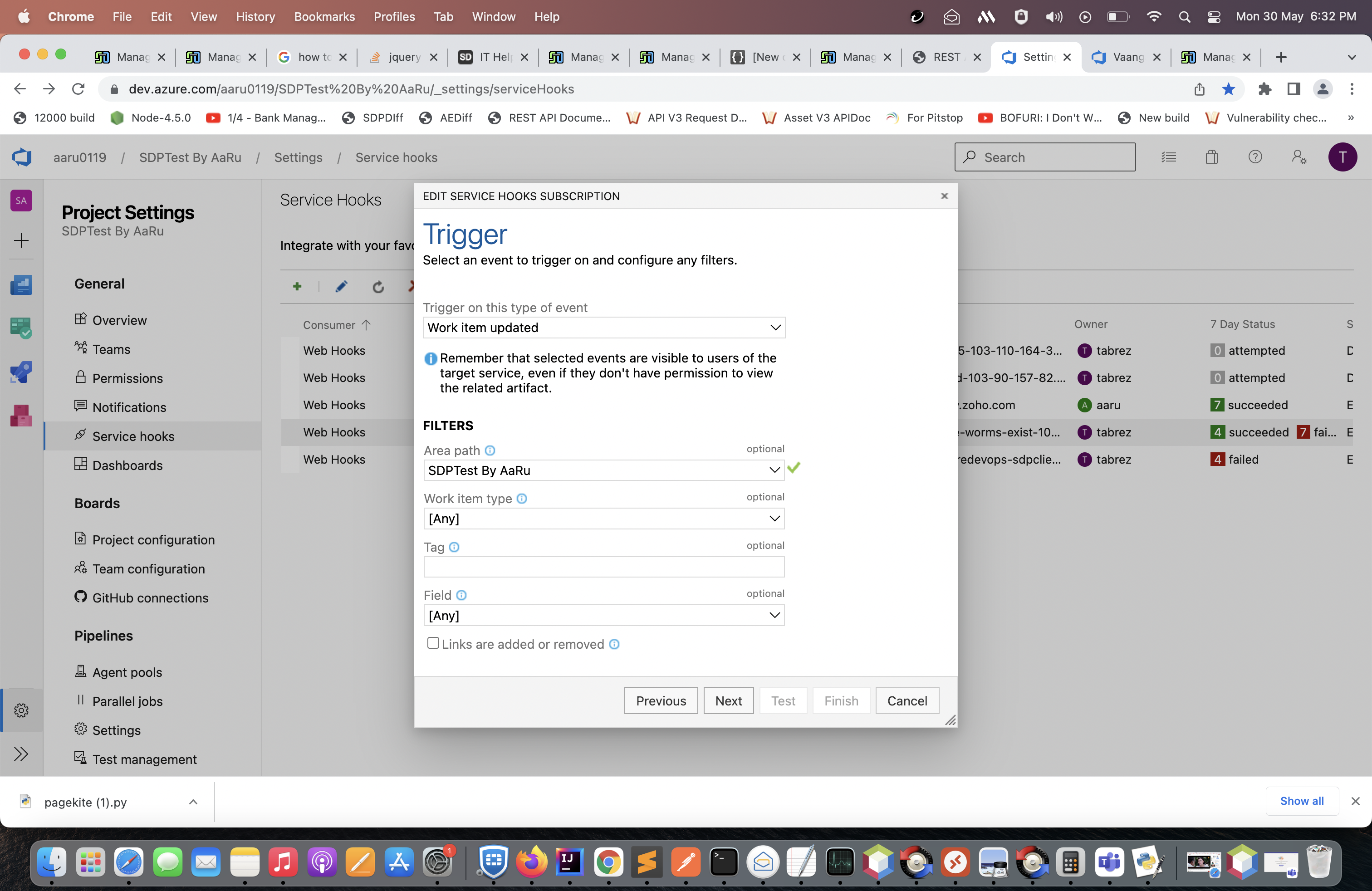 4. On the other part we need to create a trigger in Azure DevOps to hit the SDP REST API on status change of the work item
