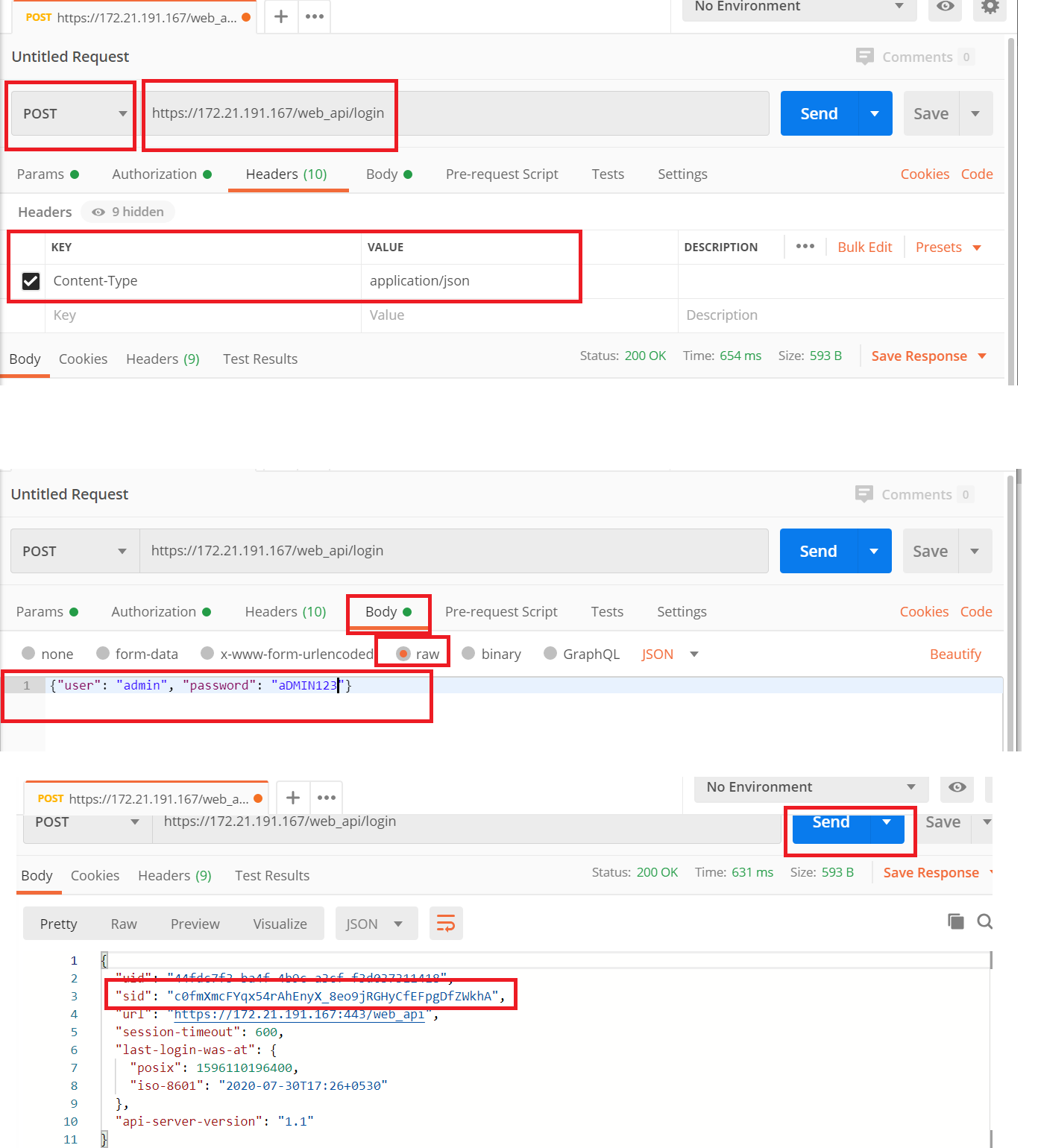 - URL = https://managementServerIP/web_api/login (Need to update managementServerIP value)