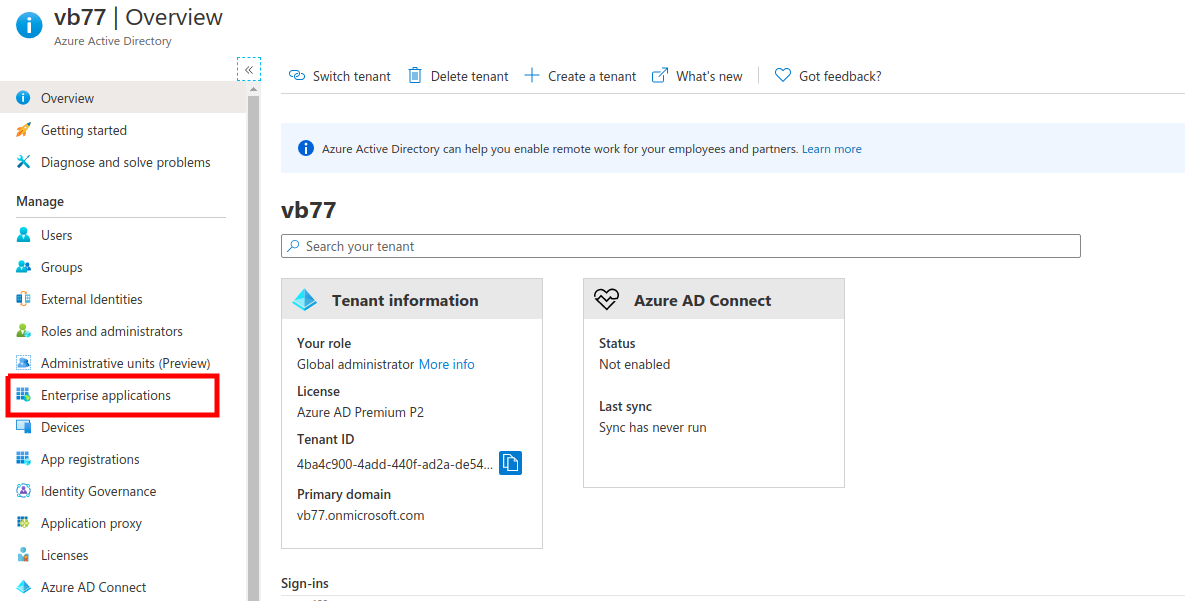 https://portal.azure.com/#home) with Global Admin privilege and click on "View" button against "Manage Azure Active Directory". This will load the Azure Active Directory(AAD) Overview section.