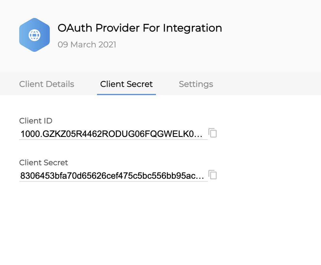 9. Click on Authorize and your OAuth provider will be added. Below are the values used configuring Zoho as an OAuth Provider.