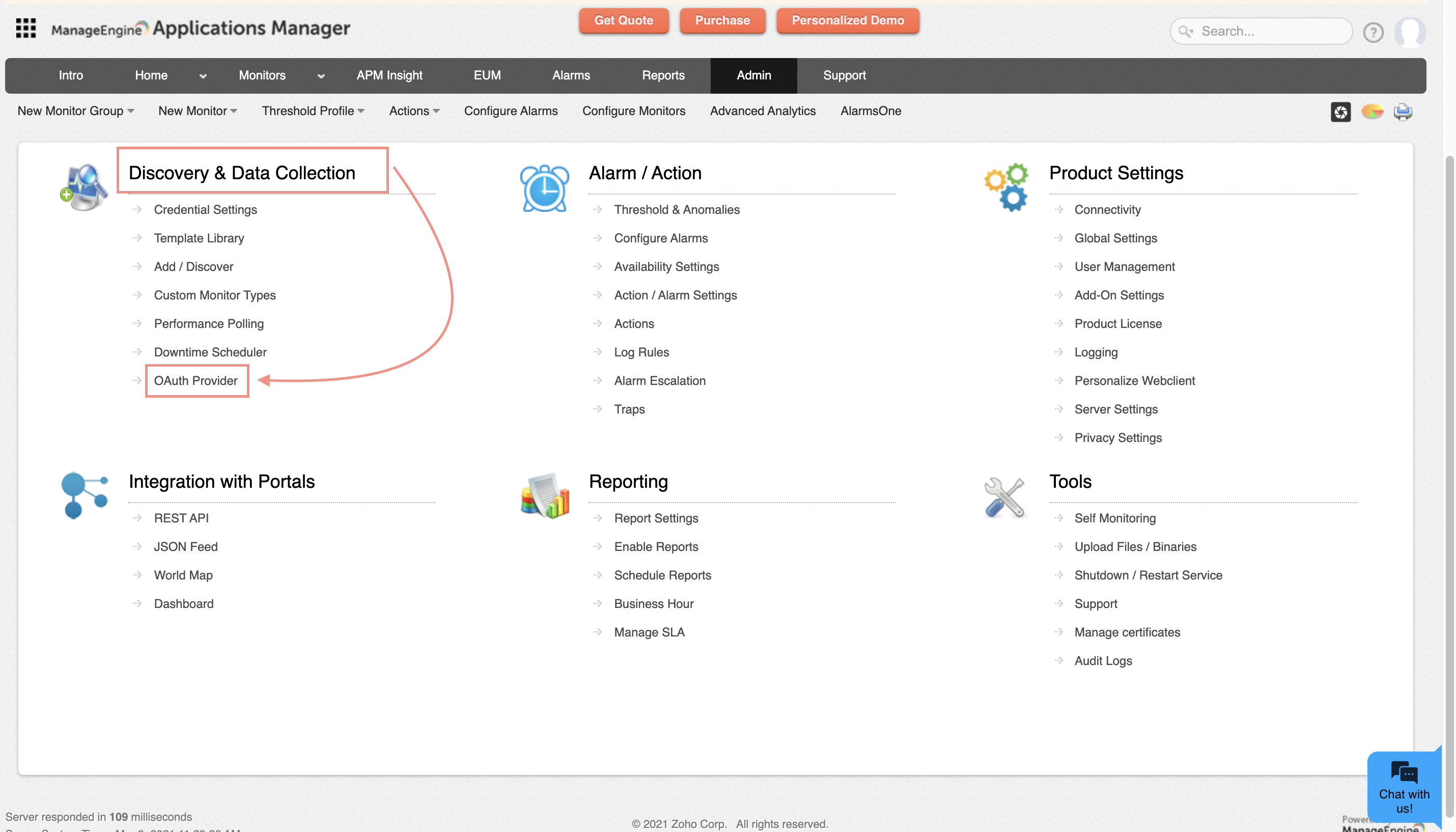 1. In Applications Manager navigate to the Admin tab and under Discovery & Data Collection click on OAuth Provider.