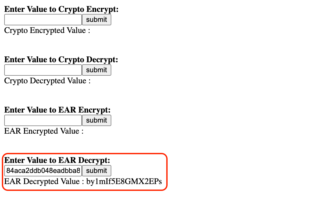 Paste the encrypted password into: "Enter the Value to EAR Decrypt" field