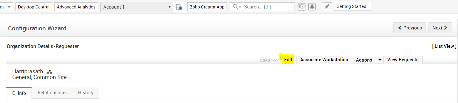 Once you click "Change as Technician" option, it will then take you the technician page where you can associate the accounts, sites & roles for the technician.