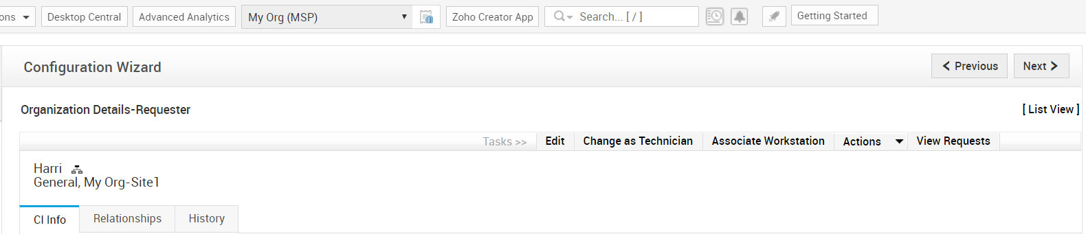 4) You can find the “Change as Technician” option in the MSP-Requester detail screen as shown in the screenshot below.
