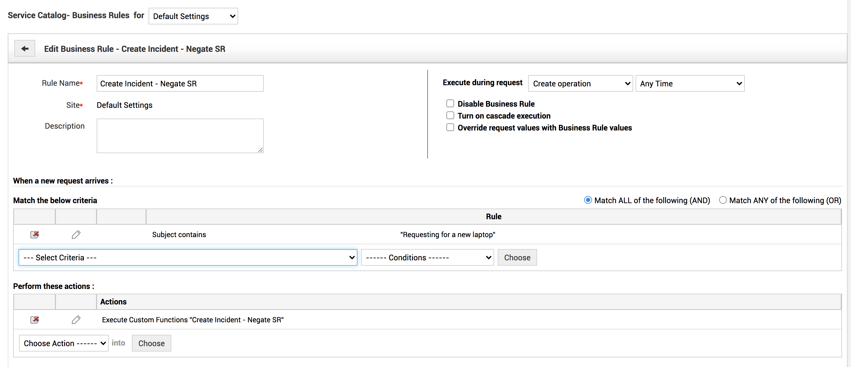 5. Configure the created custom function in a Service Request Business Rule to get executed on every SR created.