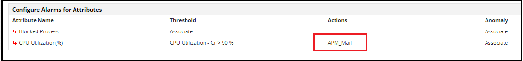 1.) Ensure that actions have been associated for the attribute that generated the alarm. For example, if the CPU utilisation of the server exceeded the permissible levels and generated the alarm, navigate to Monitor page-> Configure Alarm and ensure that Actions are associated with this attribute.