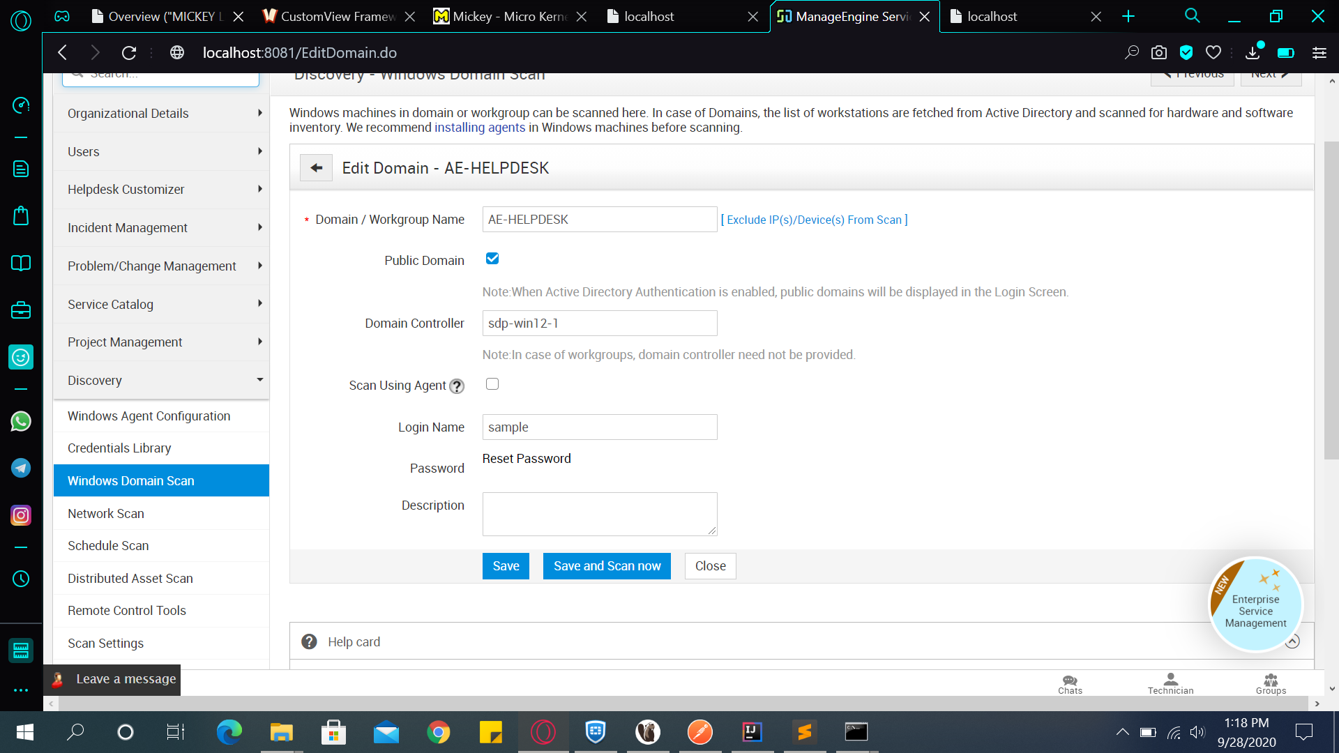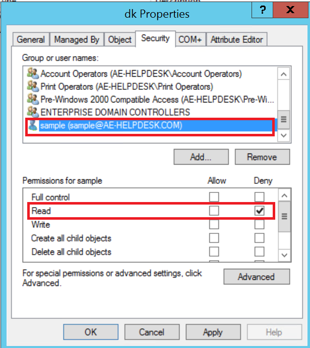 Say user "sample" is configured in domain configuration in the product, then restrict access of the OU "dk" for the user "sample".