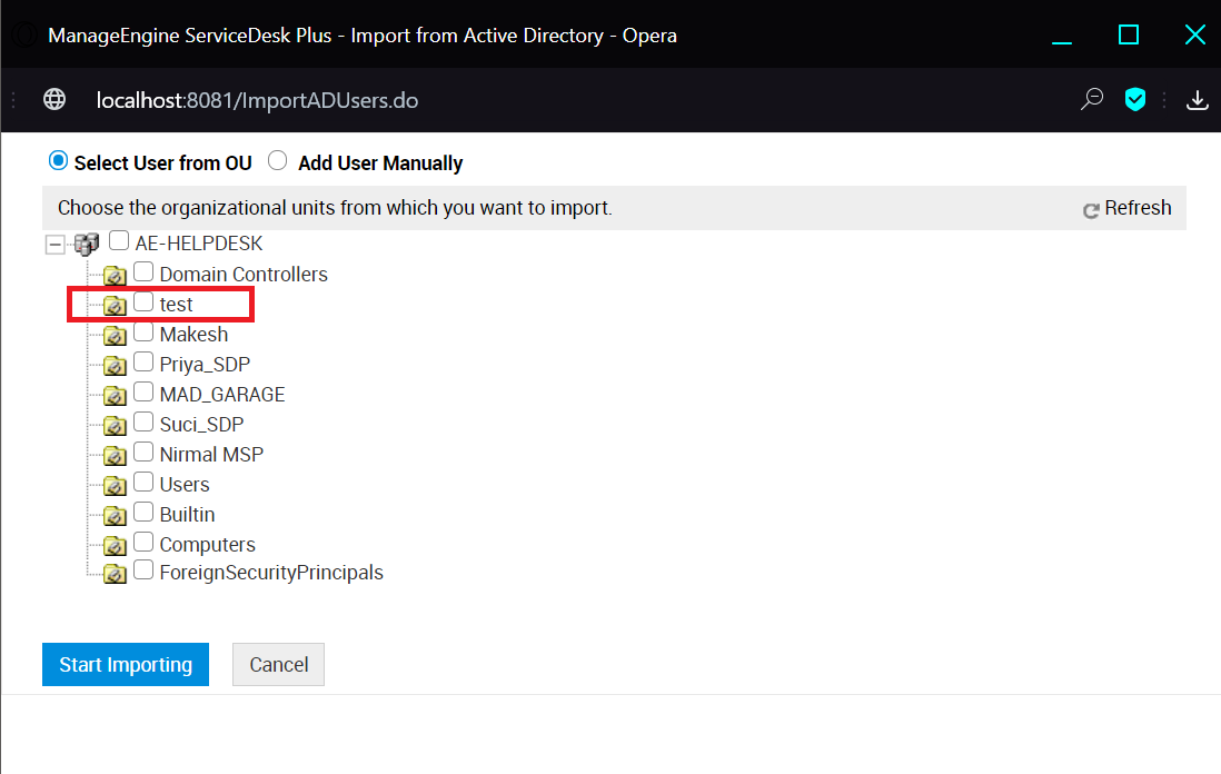 So that while importing the OU "dk" is not accessible and the users in that OU will be considered as deleted.