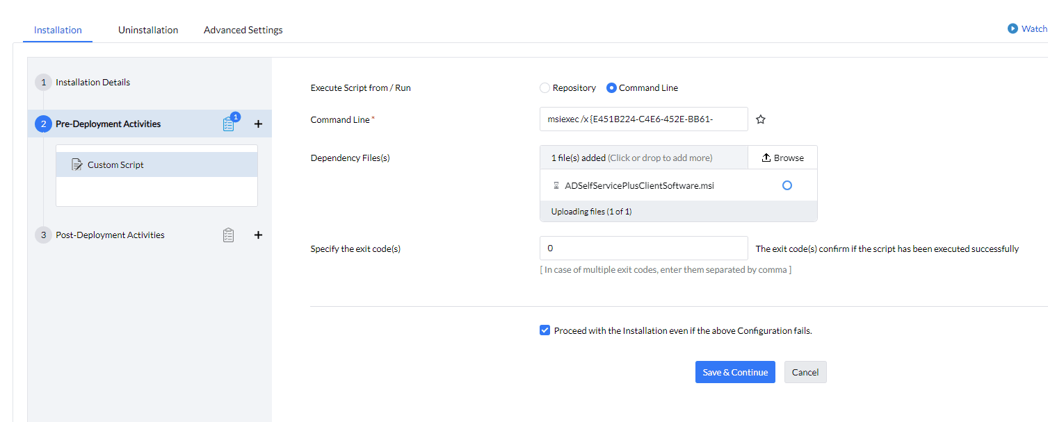 Dependency File: Browse and locate ADSelfServicePlusClientSoftware.msi.