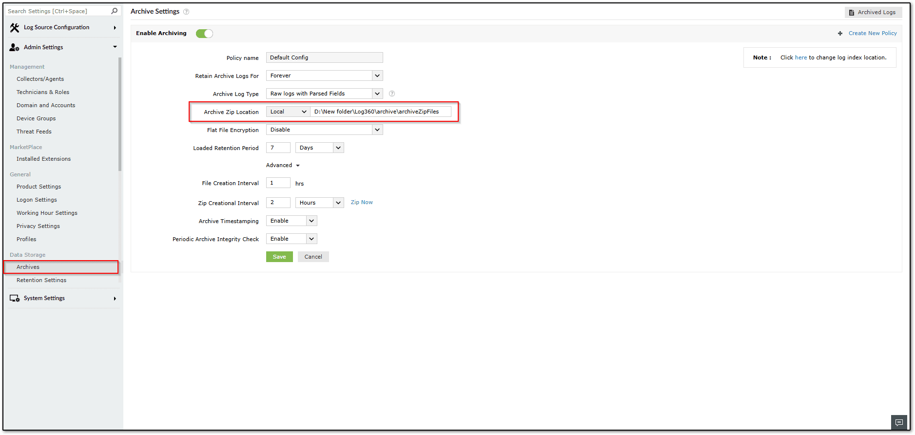 You can configure multiple archive policy to store archive in various location. Creating archive policy offers you option to store select log source's logs in a specific location with required log retention. By creating multiple archive policy, you can store the data in different location as per requirement.