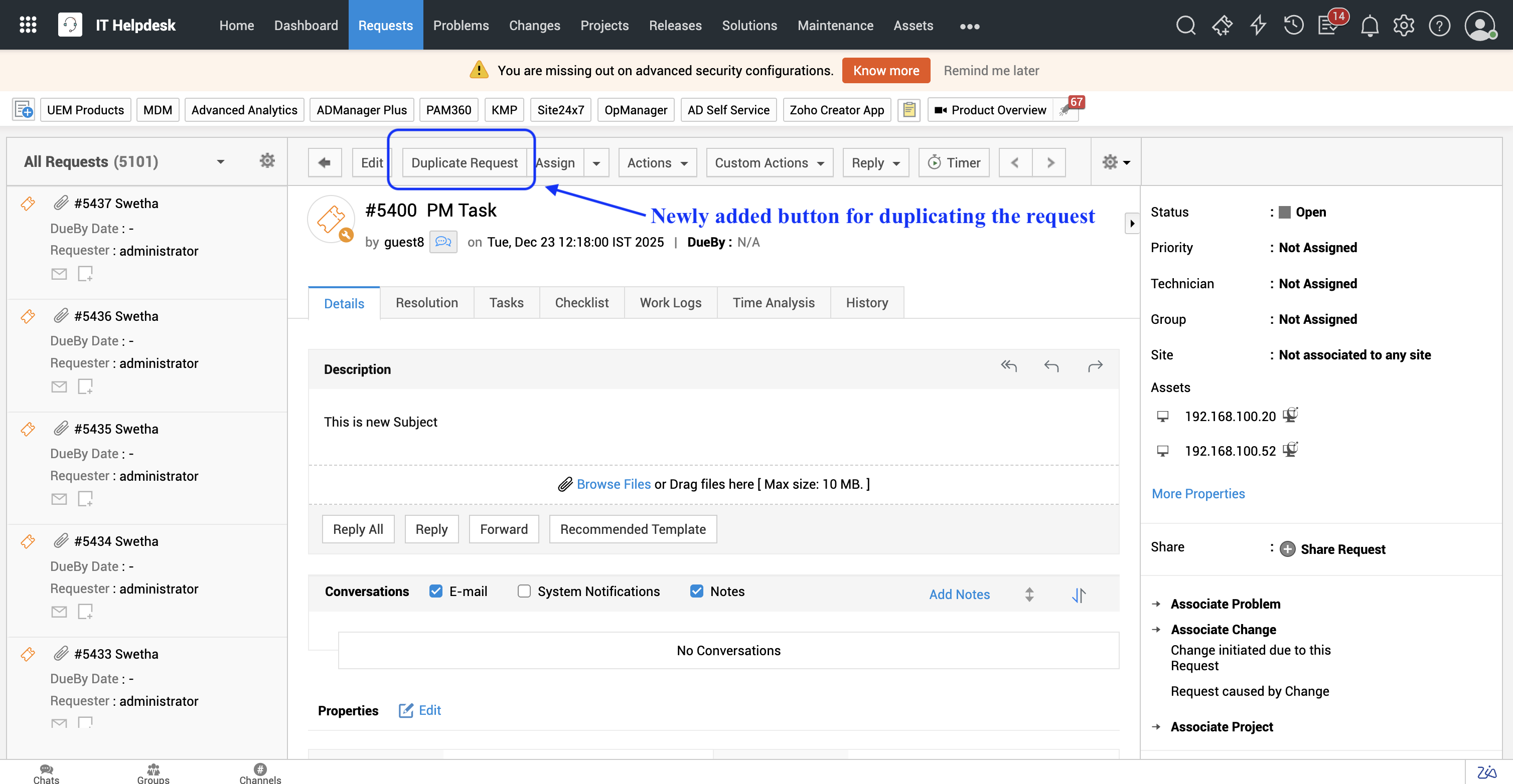 Use Case: Script to duplicate the request in a single click. Note: For builds above 11204 duplicate_request.zip without the fjar fix. Execution Steps: 1. Place the attached HTML under ..\ManageEngine\Servicedesk\integration\resources - folder. 2. ...