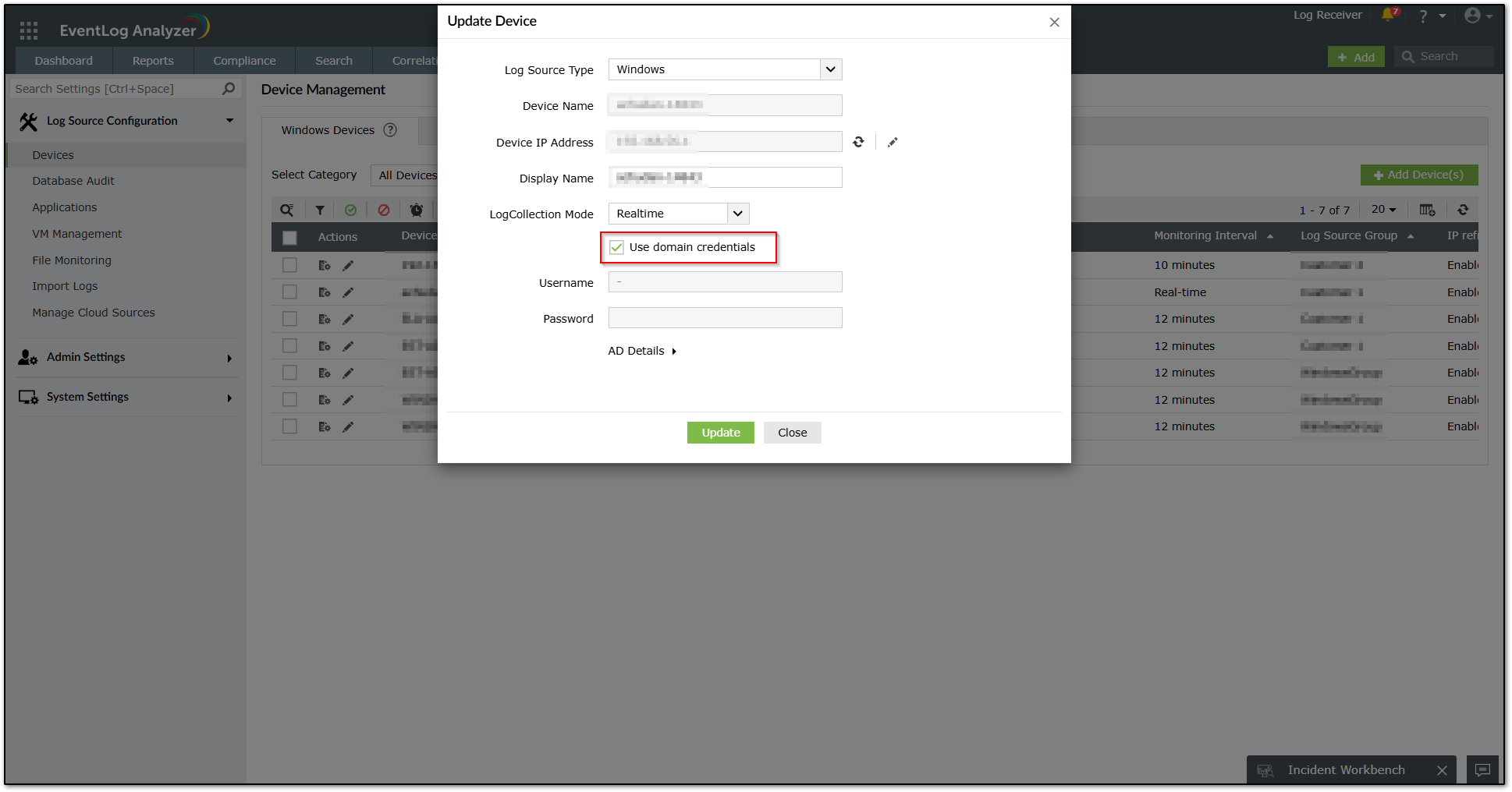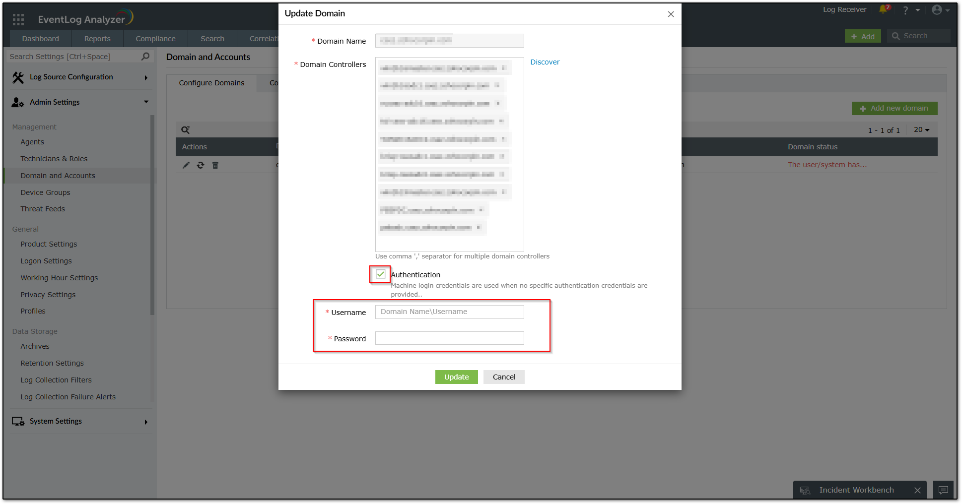 2. User rights and Incorrect credentials: Check if the error is due to Insufficient User Rights or Incorrect credentials in EventLog Analyzer, update the user credential with a domain admin account or a Service account with minimum privilege for the respective device to start/resume log collection. For domain joined machines: