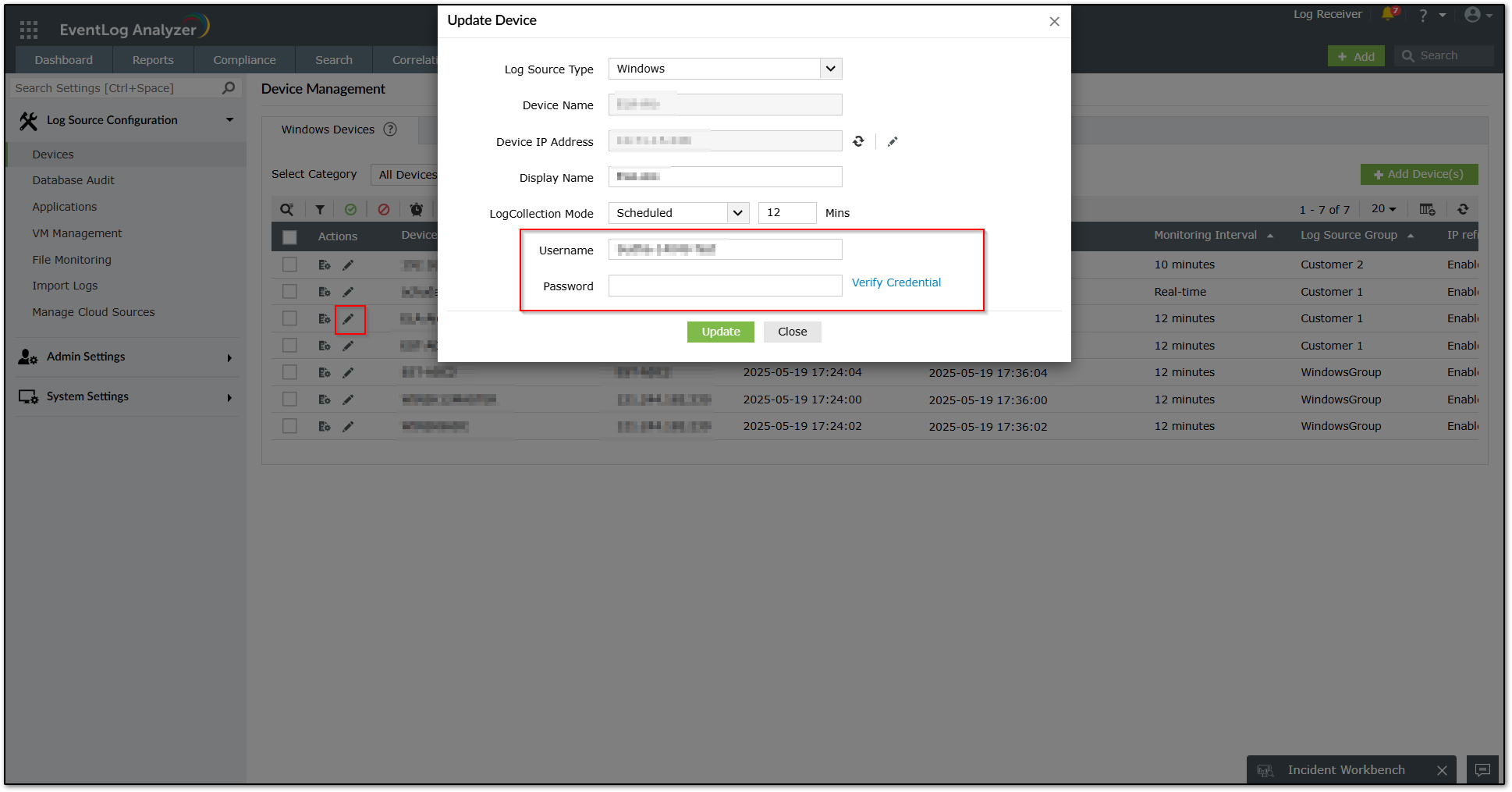 Navigate to Settings >> Device >> Windows device. Update the credential for the respective device. Choose "Verify Credential" to validate the connection and save it.