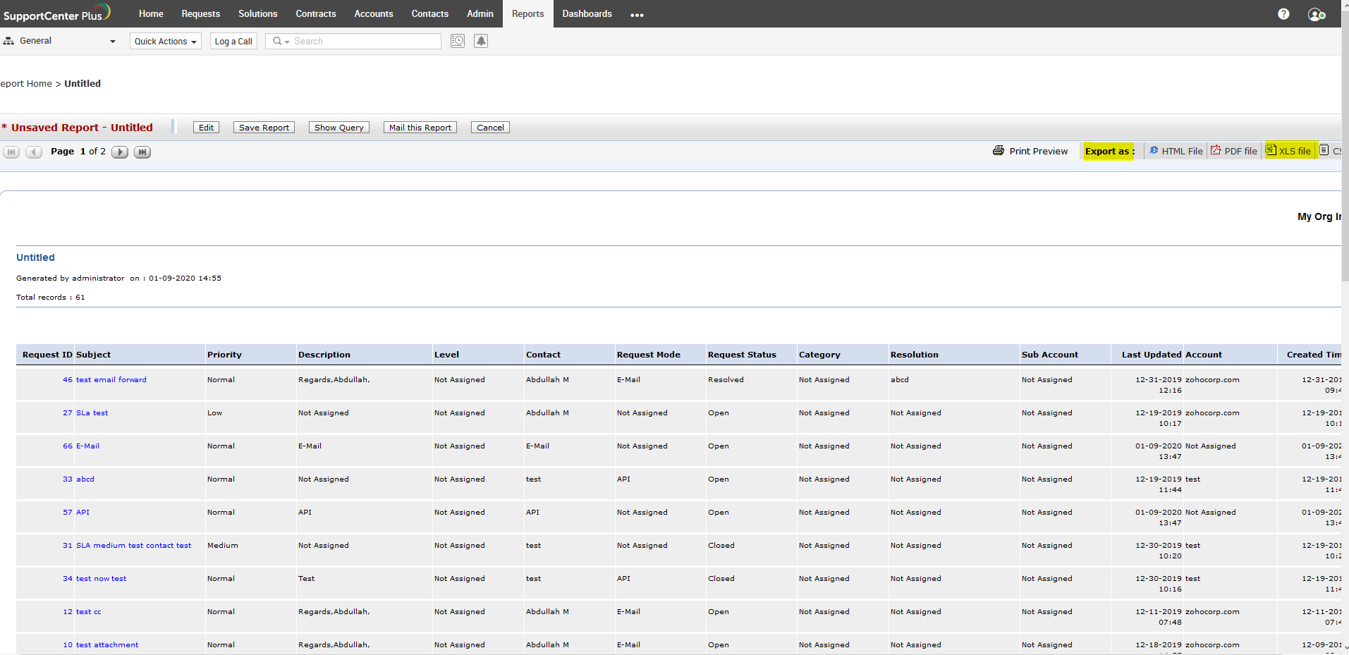 * Save the report and export it as an xls file.