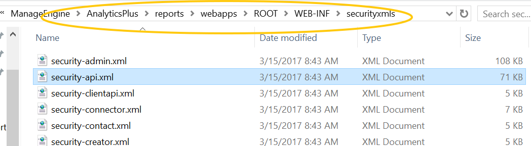 - Stop Analytics Plus services and take a backup of <AnalyticsPlus Home>\reports\webapps\ROOT\WEB-INF\securityxmls\security-api.xml