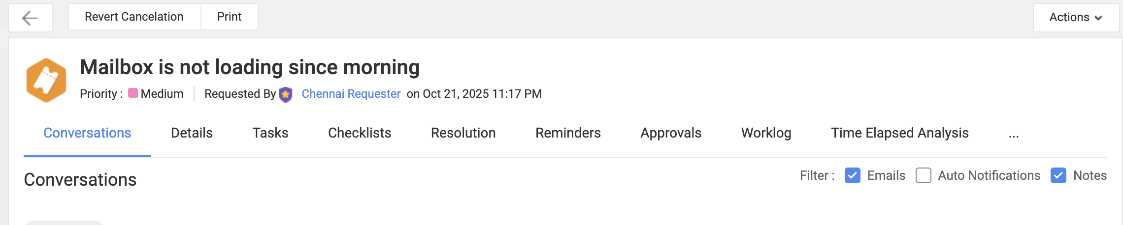 - In the Request Details page, Time Elapsed is displayed once a request is resolved.