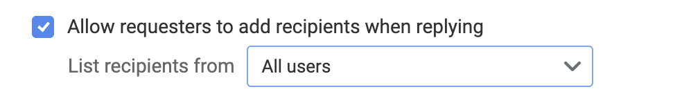 You can also enable the above option if the requester should have the privileges to add recipient's while replying from the portal.