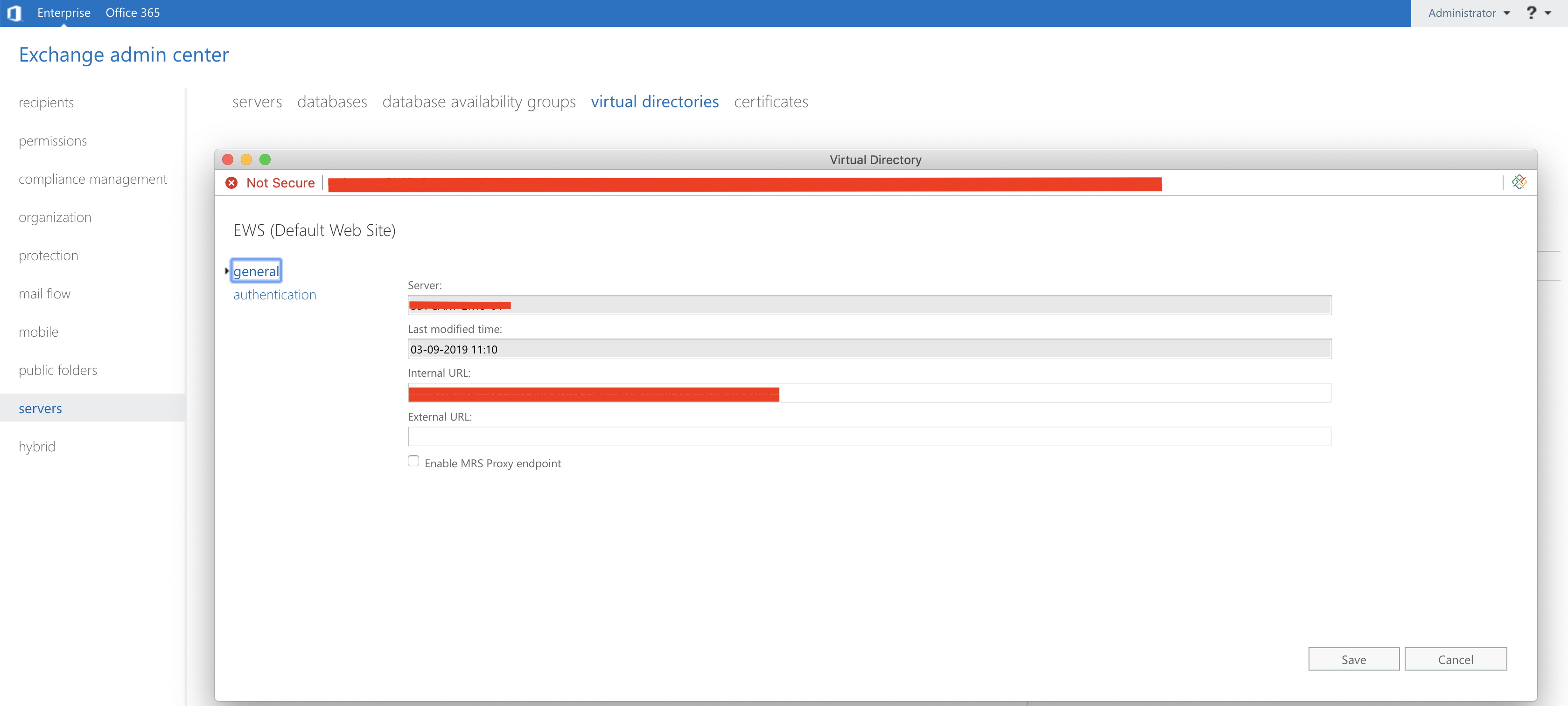 > Login as administrator to the /ecp portal of your Exchange Server.