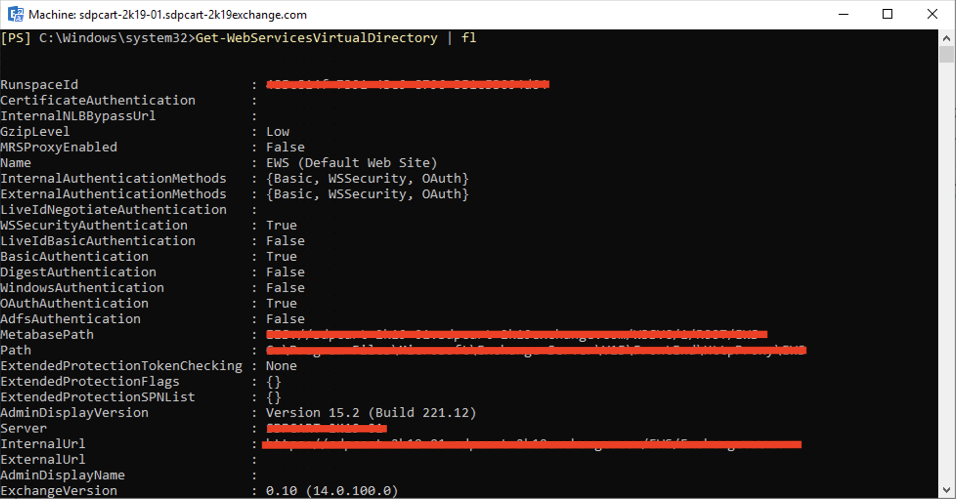 > You can get the EWS URL from the InternalURL and ExternalURL. Use ExternalURL if available.