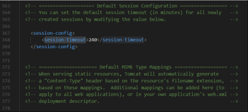 3. Search for <session-timeout>. Once you find it, change the default value 1 to the desired value (should be in minutes).