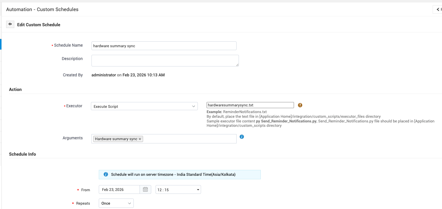 Admin → Automation → Custom Schedule