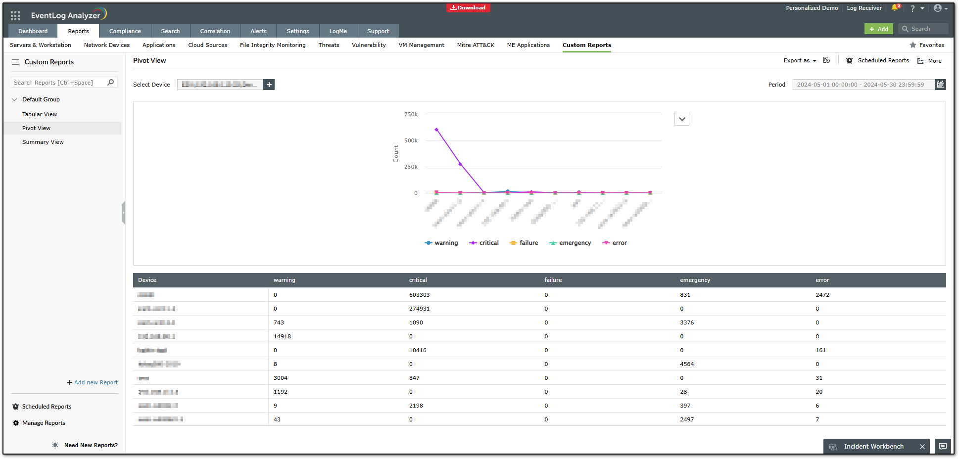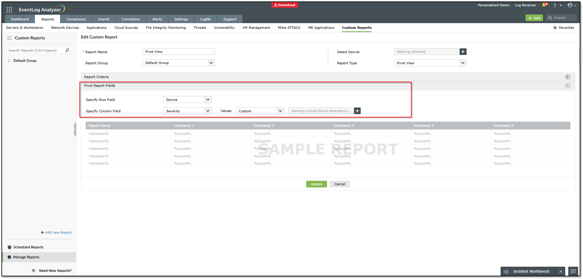 This article offers you the steps to create custom report as Pivot View in EventLog Analyzer. It will guide you through the process of generating custom report as Pivot View and offer a brief idea on when to use this option for your specific needs.