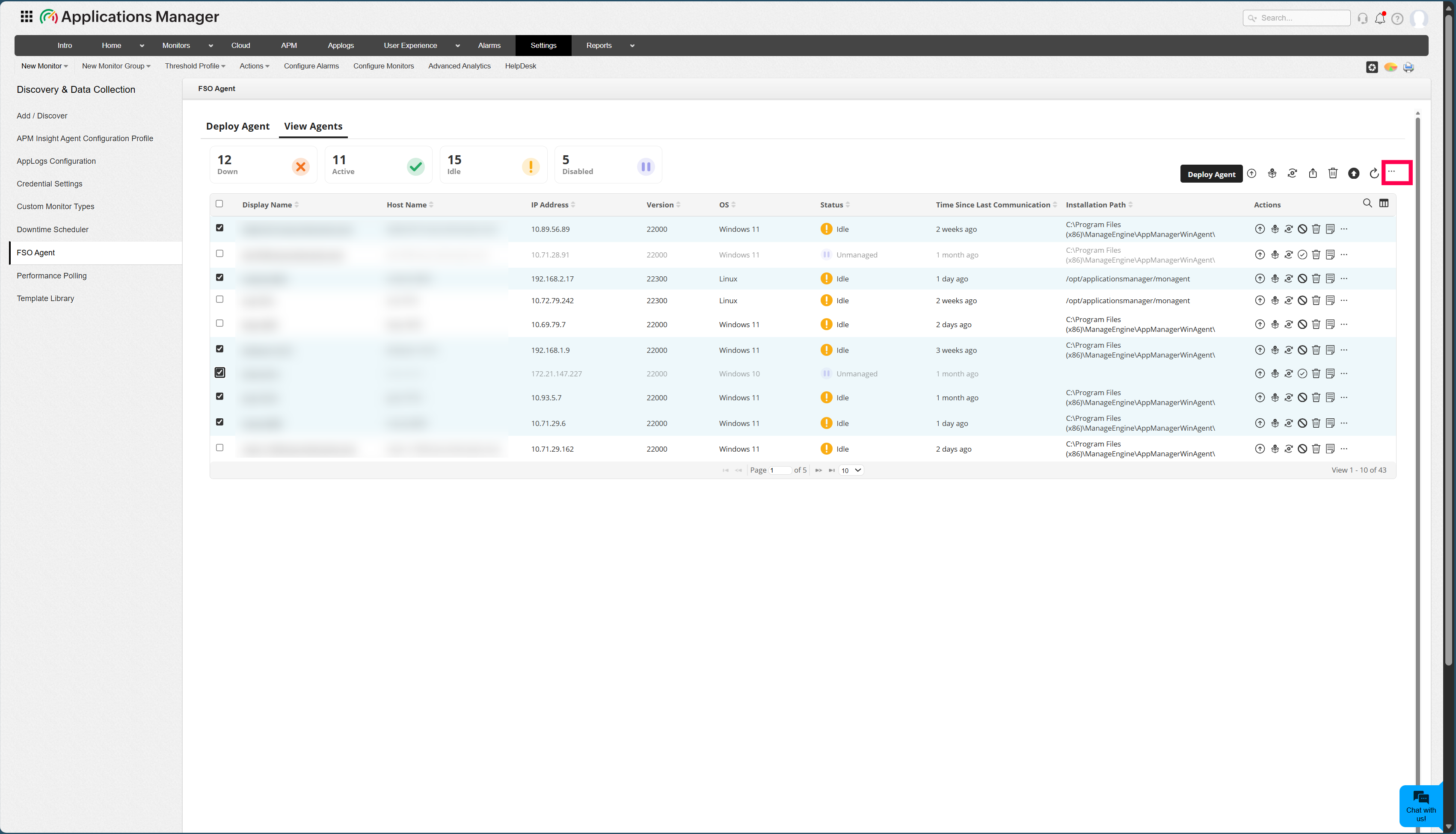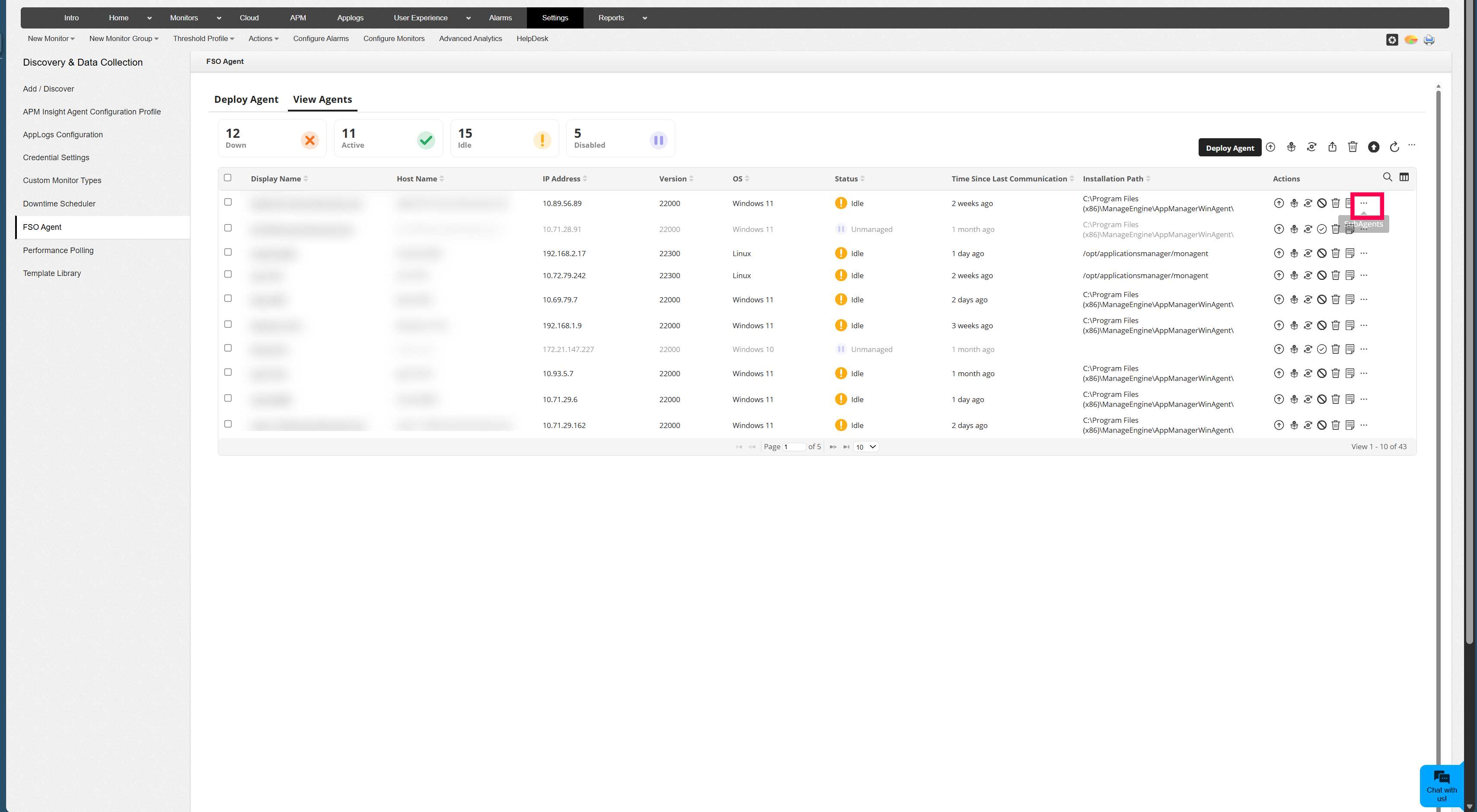 You can disable the AppLogs sub-agent from the FSO Agent management page by navigating to Settings → FSO Agent