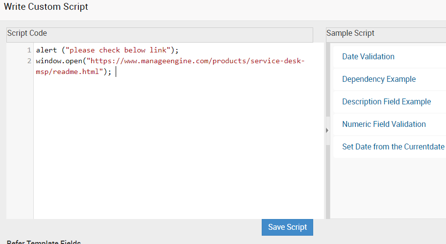 Based on the condition, the below script can be used to open a new link Open the link in the same tab window.location.href = "link"; Open the link in a new tab window.open("link here");