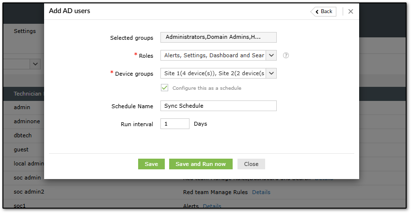 Setting up schedules will auto-add the domain users as technicians based on the roles allocated.